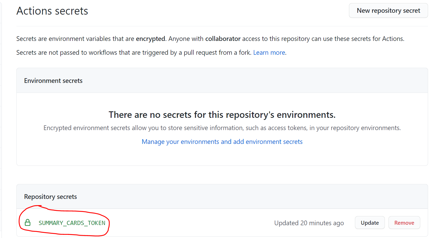 | Find secrets in repository settings |